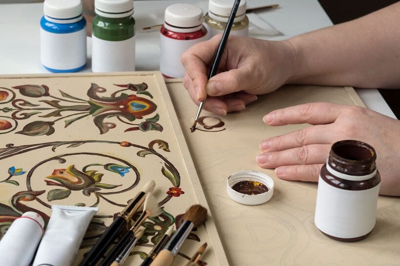 Современные художники бережно переосмысляют старинные мотивы и технологии, адаптируя их к новым задачам. Орнаменты переносят на предметы интерьера и декора – шкатулки, панно, кухонную утварь, сувениры, мебельные детали – а также экспериментируют с формами, палитрой и композицией. Часто сохраняется узнаваемый «язык» узора, но меняются пропорции, плотность рисунка и подача, чтобы изделие органично смотрелось в современном пространстве.