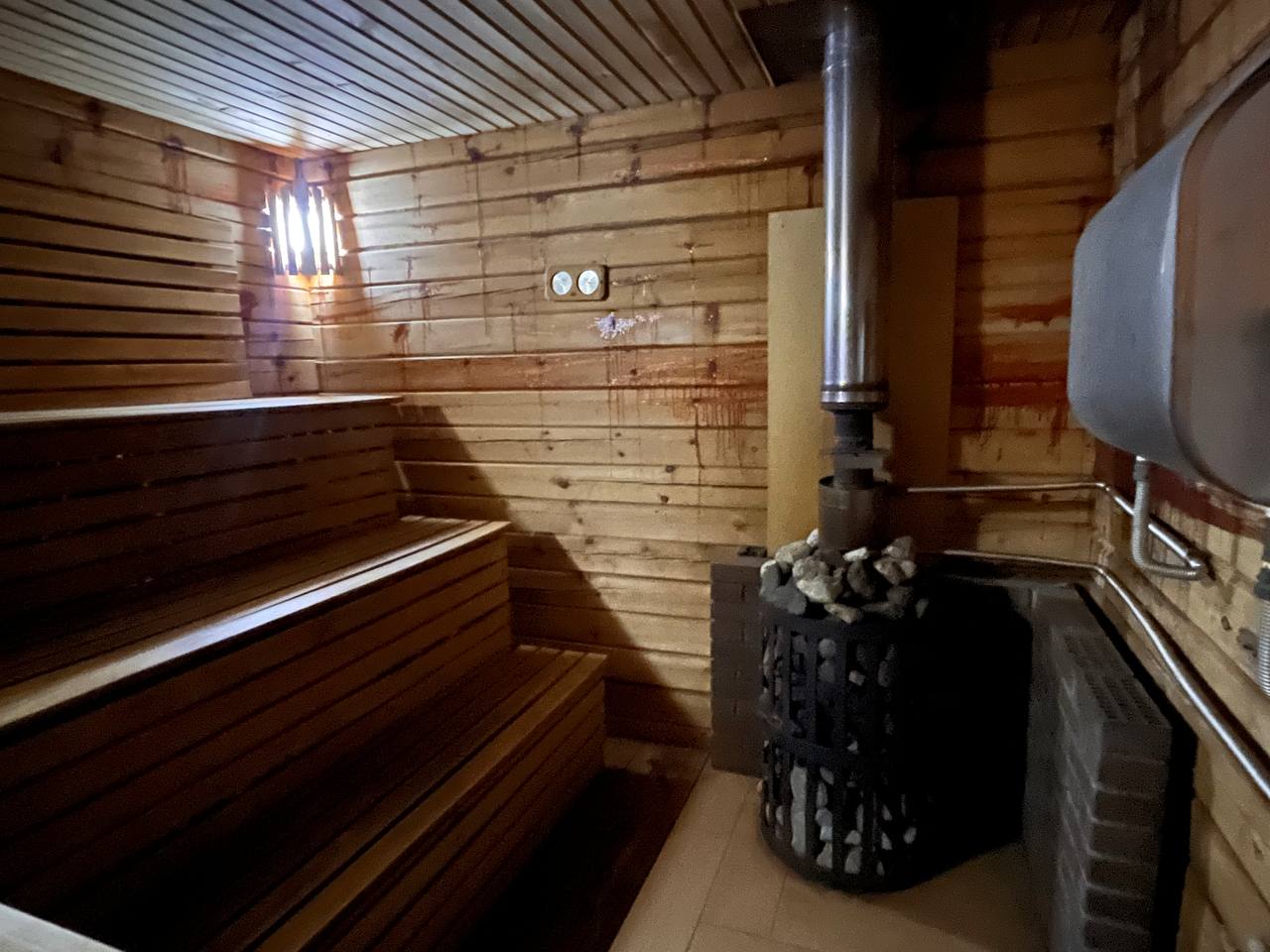 Одним из главных преимуществ коттеджа является наличие собственной бани. Это отличное место для расслабления и восстановления после активного дня. Баня выполнена в традиционном стиле и оборудована всем необходимым для комфортного посещения.