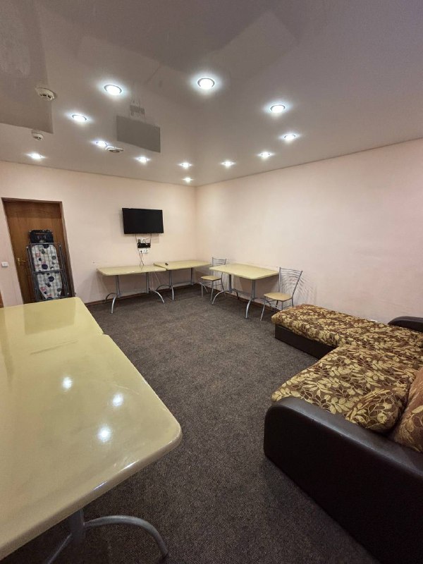 Внутри корпуса расположена просторная гостиная зона, оборудованная мягкой мебелью и столовой. Здесь можно собраться за столом с семьей или друзьями, а также воспользоваться телевизором для вечерних посиделок. Свет, проникающий через большие окна, создает ощущение тепла и уюта.