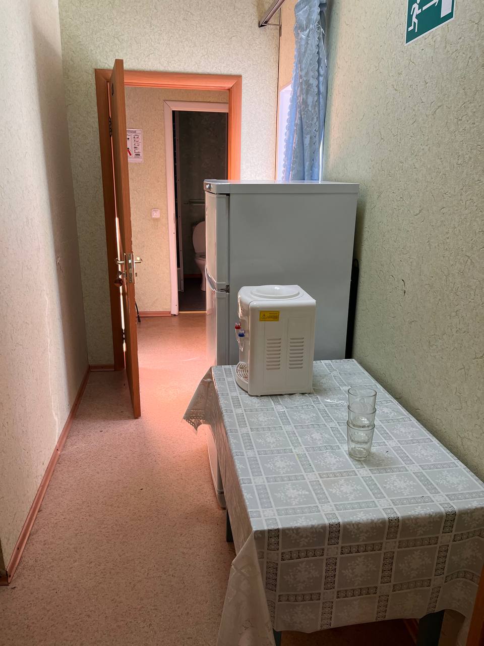 В корпусе предусмотрены современные санузлы, оборудованные душевыми кабинами, унитазами и раковинами. Также имеется небольшая кухонная зона с холодильником и кулером для воды, где гости могут воспользоваться бытовыми удобствами в любое время.