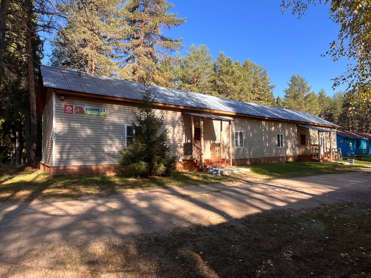 Из окон корпуса открывается живописный вид на лес, что добавляет особую атмосферу уюта и спокойствия. Близость природы позволяет проводить время на свежем воздухе, а удобное расположение корпуса делает его подходящим для всех членов группы.