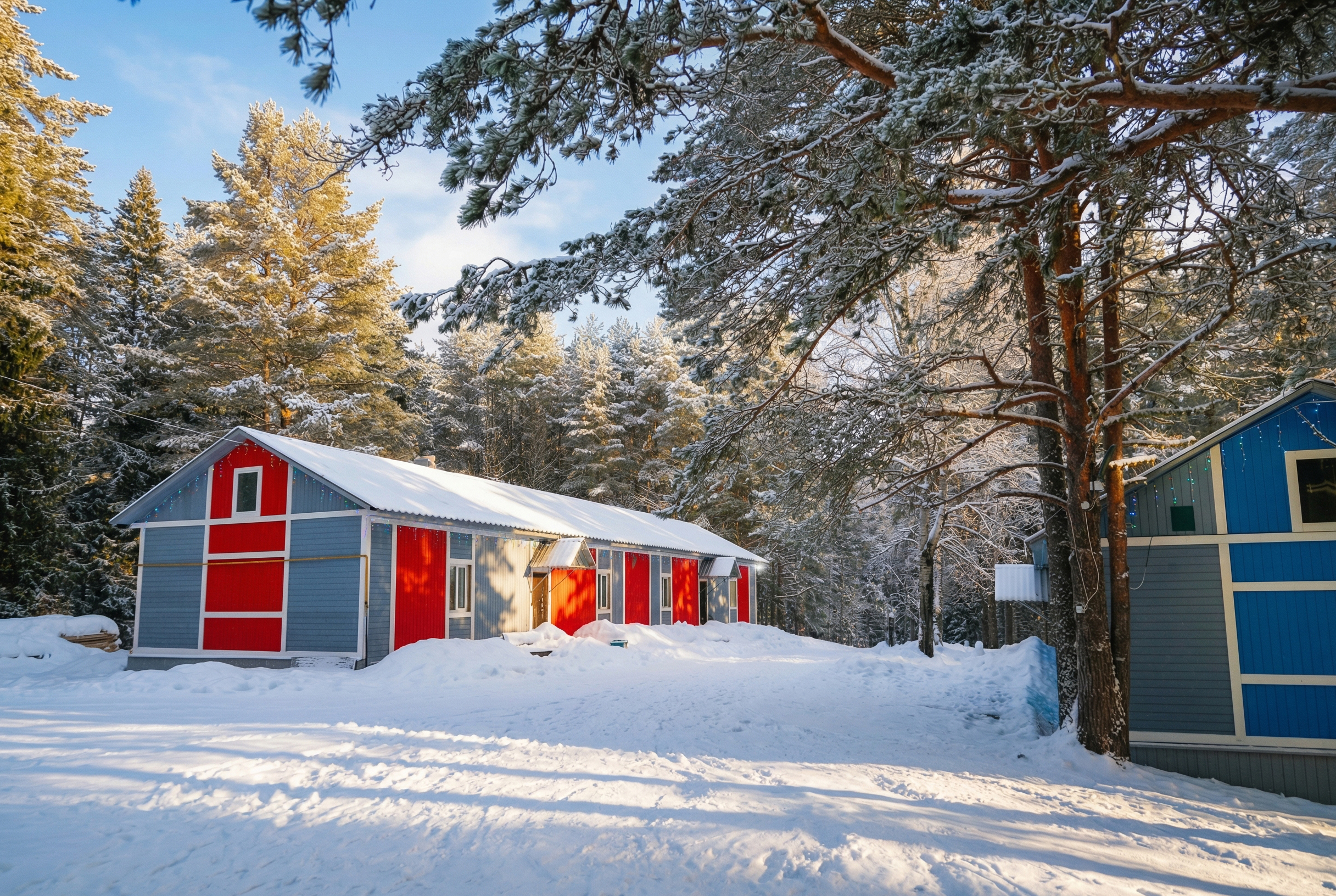 Корпус №5 – это просторное здание с двумя отдельными входами, что делает его удобным для больших групп, которые хотят разделить пространство на две части. Идеально подходит для семейного отдыха, коллективных поездок или мероприятий на природе.